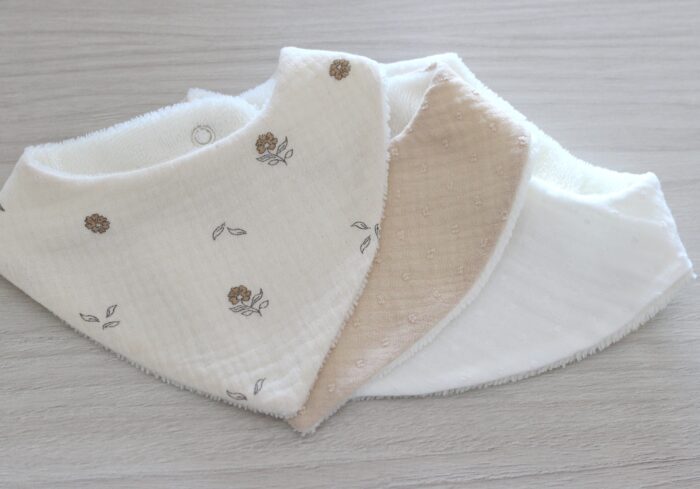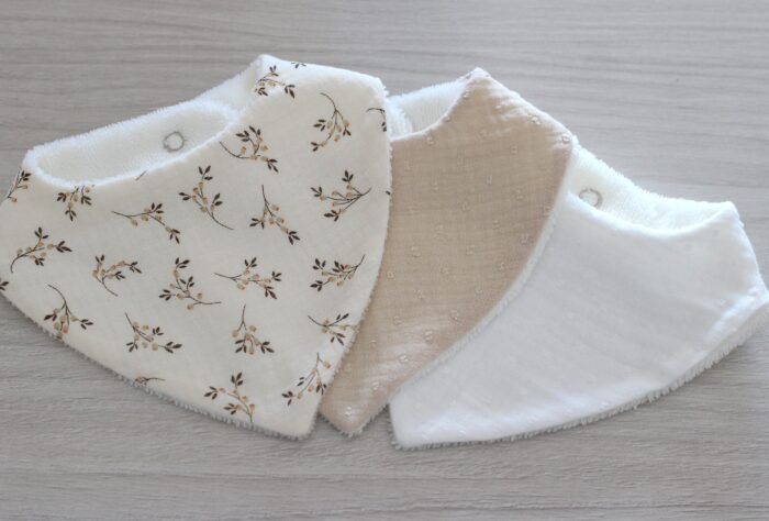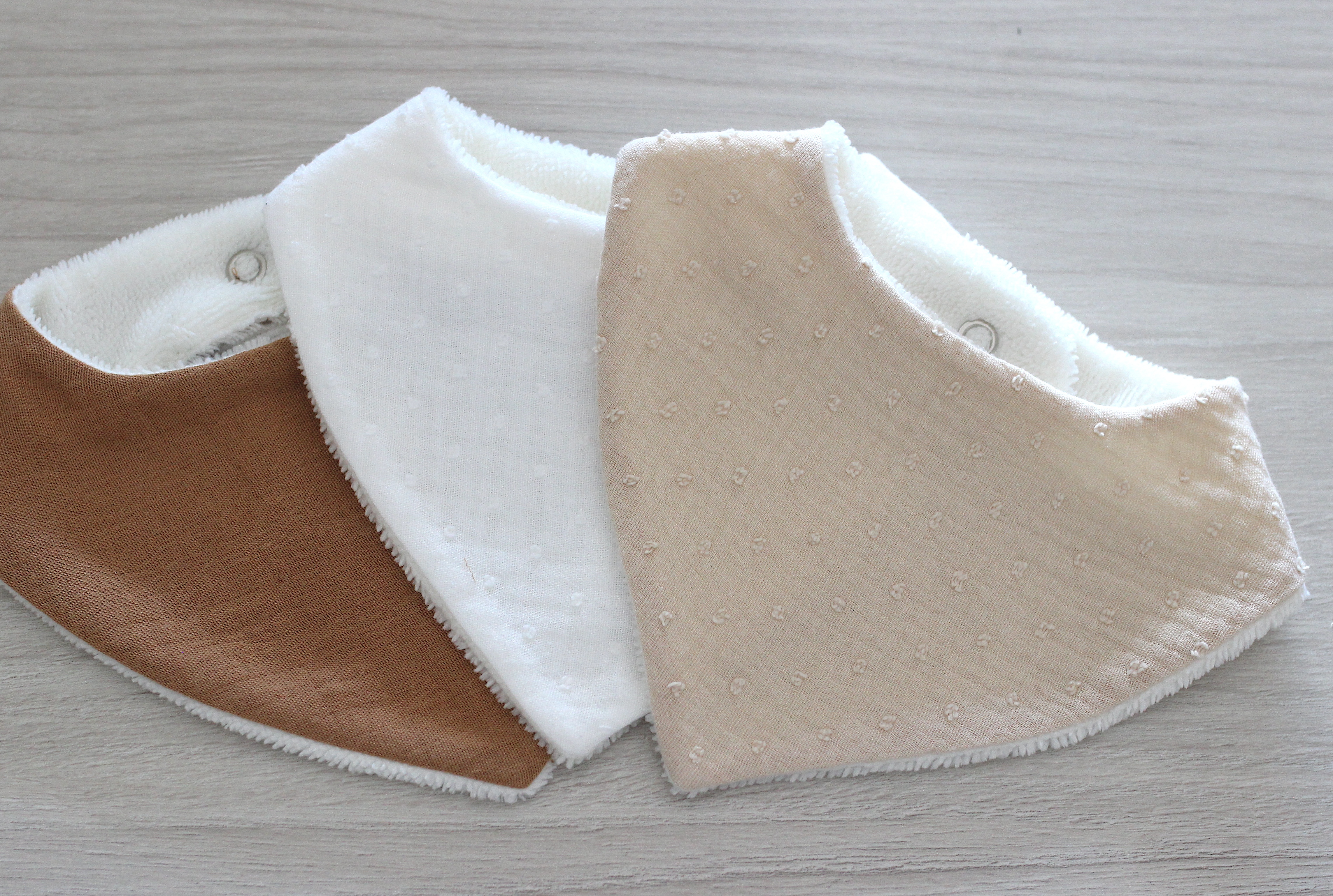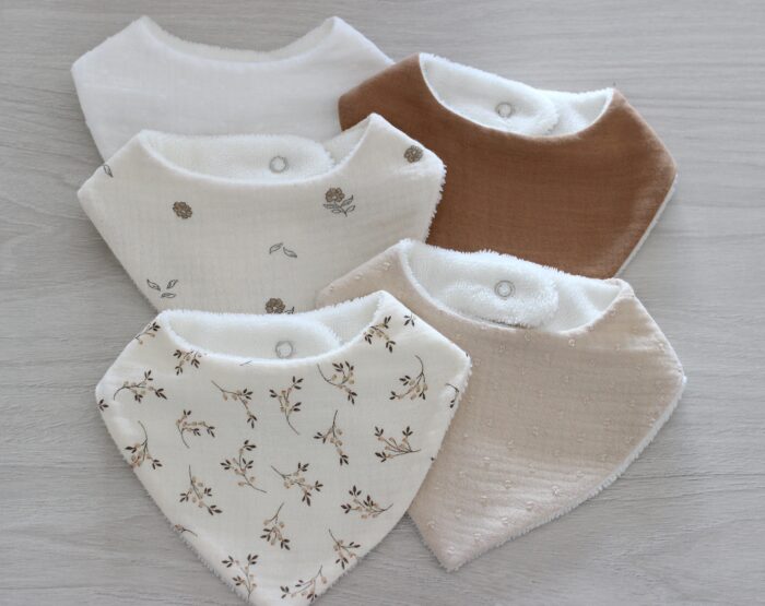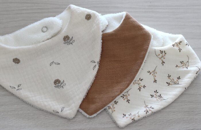 Vous avez le choix entre 5 coloris de bavoir bandana, ils sont vendus à l’unité (se référer à la dernière photo pour le choix des coloris)