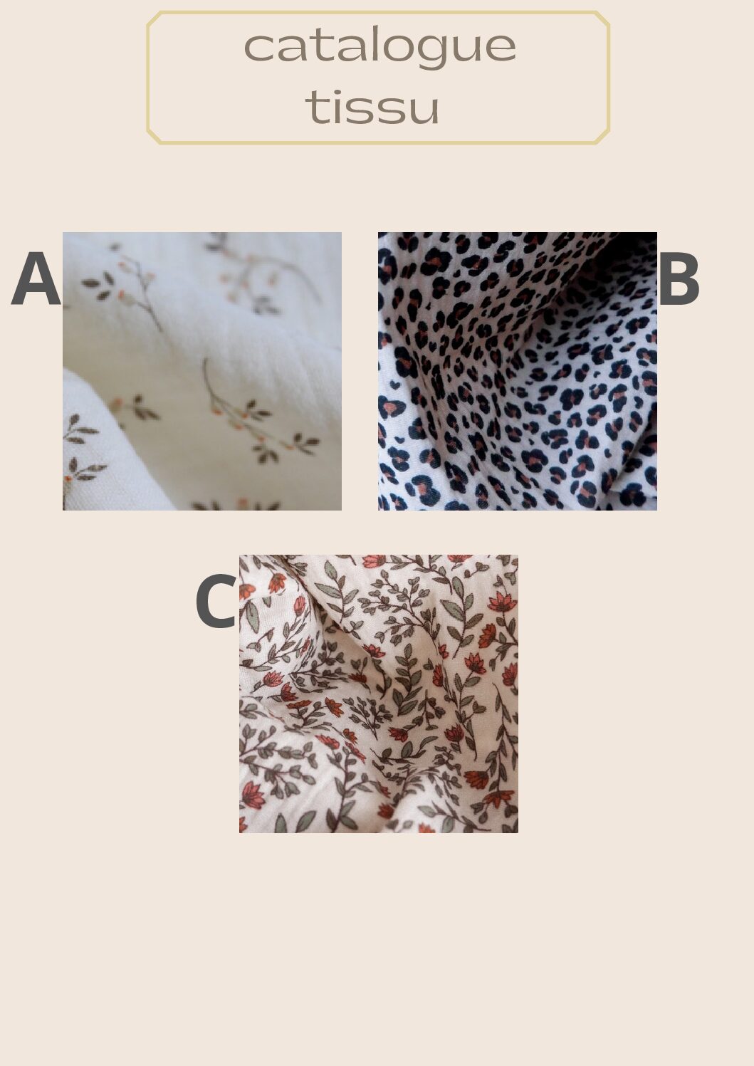 A Ecru grande branche, B Ecru fleurs, C Léopard