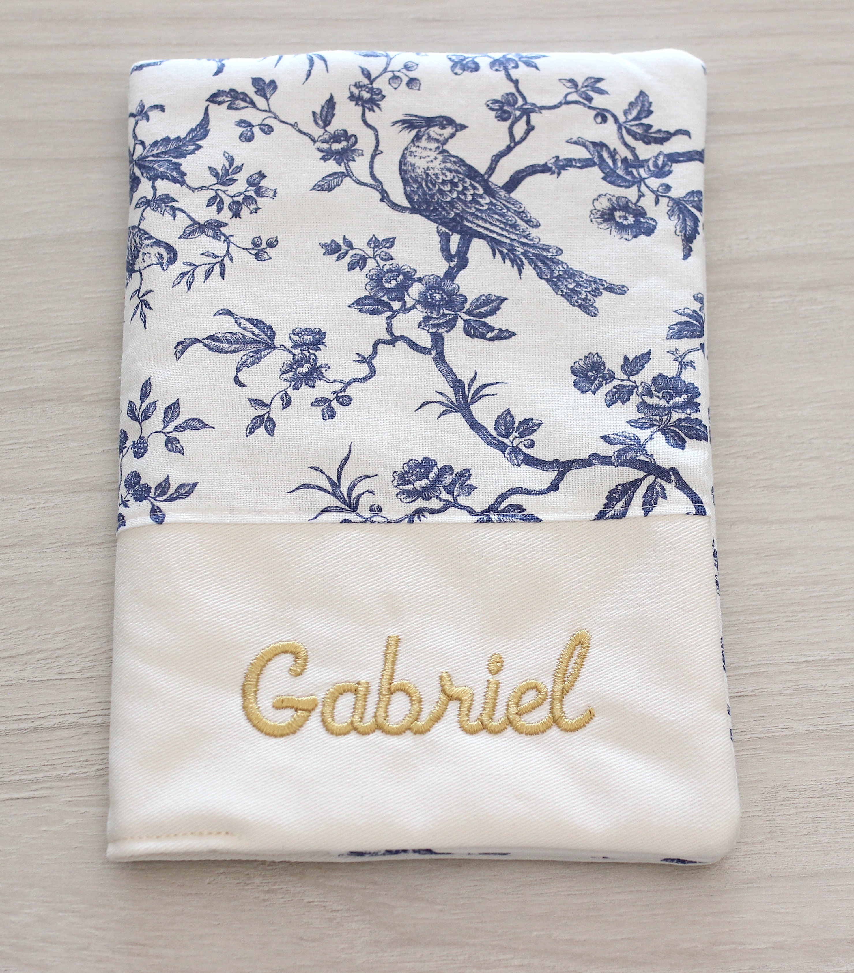 Protège carnet de santé personnalisé motif oiseau bleu, cadeau naissance bébé